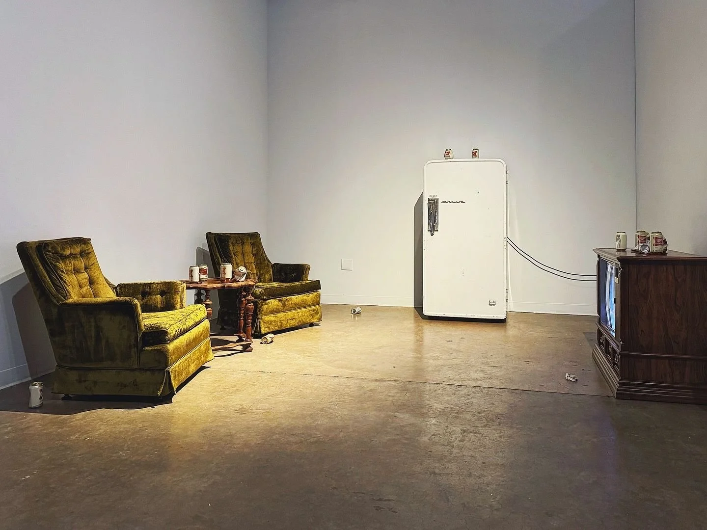 Come sit, crack a beer, make yourself comfortable and be consumed by the destruction as it flashes across the screen. By creating an environment that exudes the comfort of a simpler time, including the vice of beer, and combining natural disaster footage with the metaphors of Def Leppard's Pour Some Sugar on Me - The Boob Tube exemplifies how our changing environment has become "sexualized" through screens and the media turning it into a form of entertainment that numbs us to reality and creates a fleeting feeling of passivity.